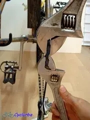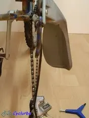 Lorsque la chape est parfaitement verticale et parallèle aux pignons, le redressage est terminé. Il faudra alors reprendre les réglages du dérailleur.