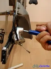 Démonter le dérailleur avec la clé Allen, sans toucher à la chaîne ni aux câbles.