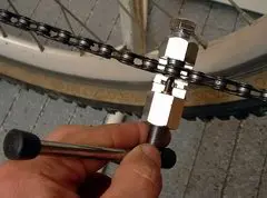 L’art du démontage des chaînes consiste à sentir l’axe, c’est-à-dire à déceler le moment où cet axe n’est plus engagé dans le maillon, mais est toujours serré par la contre-plaquette.