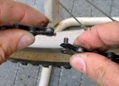 Avant de commencer l’intervention, il faut d'abord identifier le constructeur de la chaîne. Les plus connus sont Sachs, Sedis… mais aussi Shimano. Or, avec ce dernier, et seulement celui-ci, la procédure est un peu différente. En effet, il faut agir uniquement sur un axe déterminé, qui se reconnaît par sa couleur noire. Les autres axes sont en effet "rivetés", et leur démontage agrandirait leur logement, rendant le remontage peu durable.
