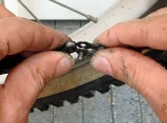 Sur la photo ci-contre à gauche, l’axe n’est pas tout à fait en place, le maillon n’a pas la souplesse requise.