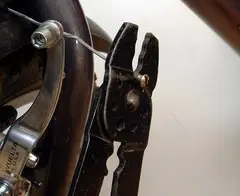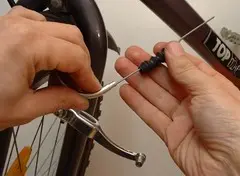 Placer un embout de câble, ou un écrou de rayon (astuce). Le sertir sur le câble.