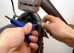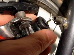 Rapprocher les étriers de façon que les patins soient à 1 mm des jantes. Serrer.