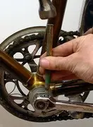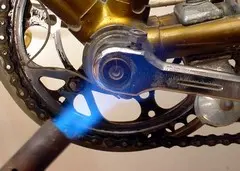Chauffer la manivelle avec une lampe à souder afin qu’elle se dilate (chauffer la manivelle en évitant de transmettre la chaleur à l’axe de pédalier).