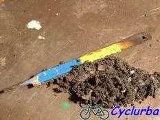 Nous avons utilisé un outil maison, fabriqué à partir d’une lame de scie à métaux, pour racler l’espace entre les pignons.