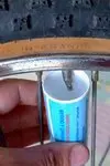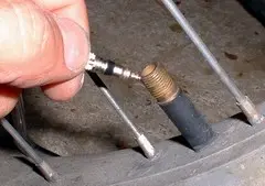 Si la valve n’est pas démontable, une petite incision peut être pratiquée à l’intérieur de la chambre à air (juste derrière la valve) pour accéder à l’obus.