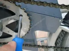Dévissez les 3 vis cruciformes (parfois vis Allen) maintenant le garde-chaîne.