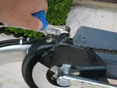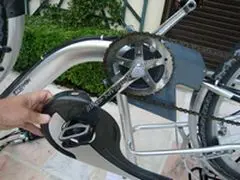 Dévissez les 4 vis maintenant le capot gris à droite du vélo (2 à gauche, 2 à droite).