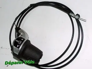 Le prix de la manette 7 vitesses, avec câble et gaine, est de 15 à… etc. 2 modèles possibles, l'ancien, plus simple, présente le défaut d'un départ de câble rasant le guidon et empêchant le montage d'accessoires (sonnette, compteur…) ; le nouveau, avec fenêtre de lecture, remédie à ce défaut. Les 2 sont compatibles entre elles.