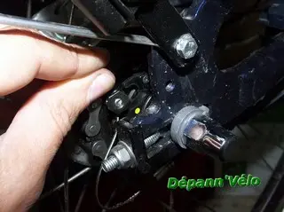 Côté manette, sélectionner la vitesse '1', pour détendre le câble.